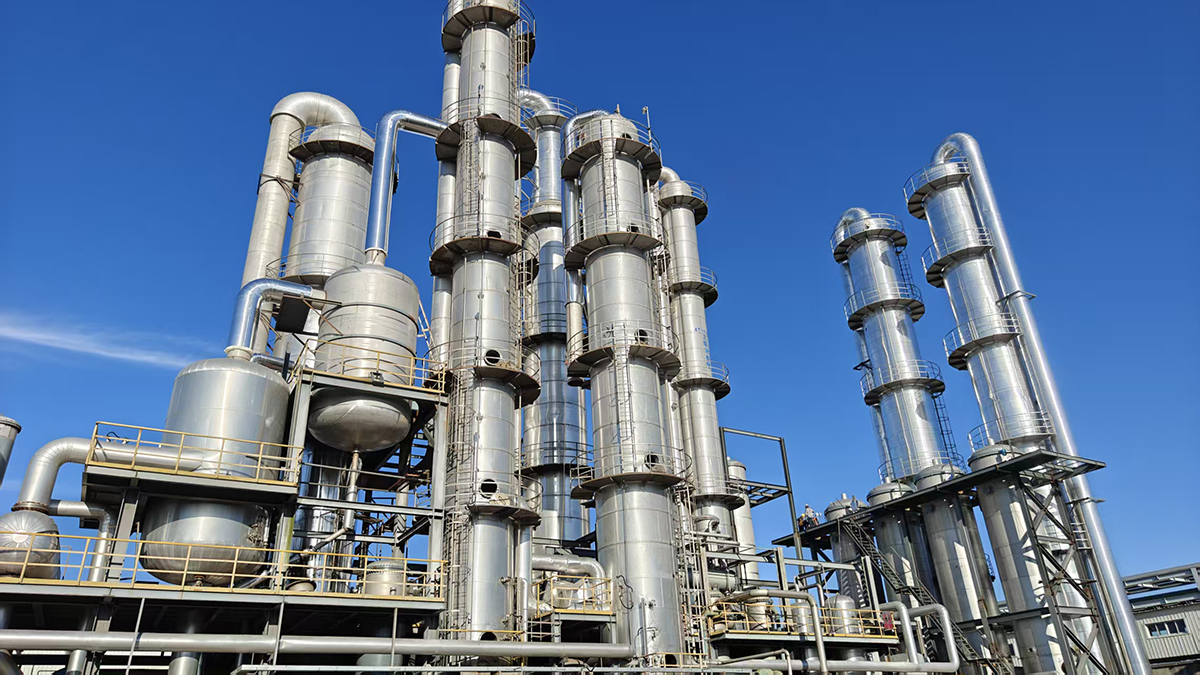 This set of equipment uses a five-column three-effect distillation system, where heat is reused three times in the system, significantly reducing the energy consumption of the entire device. Compared with the two-effect evaporation, it saves 30% of energy. Additionally, the system is equipped with a waste heat recovery device, making the entire device even more energy-efficient.